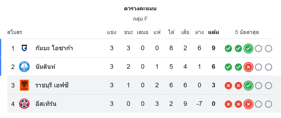 หลังแมตช์นี้ ราชบุรีเก็บ 3 แต้มแรกของรอบแบ่งกลุ่ม มี 3 คะแนน รั้งอันดับ 3 ของกลุ่ม F ตามรองจ่าฝูงอยู่ 3 แต้ม และตามผู้นำกลุ่มอยู่ 6 แต้ม ด้านอีสเทอร์นแพ้ 3 นัดติดยังไร้แต้ม ประตูได้–เสียติดลบมาก ทำให้เส้นทางลุ้นเข้ารอบยากขึ้นทุกขณะ