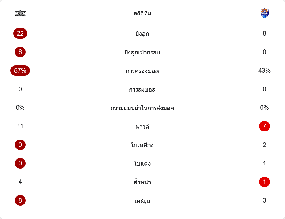 เกมนี้ บีจี ปทุม ยูไนเต็ด เป็นฝ่ายเหนือกว่าชัดในแทบทุกมิติ ทั้งจังหวะยิงเข้ากรอบ 7 ครั้งจาก 17 ครั้ง เทียบกับ คายาที่มีแค่ 1 จาก 9 ครั้ง ขณะที่จังหวะเกมรุกและการเข้าพื้นที่สุดท้ายของบีจีดูเป็นระบบและแม่นยำกว่า เกมรับก็แข็งแกร่งเสียจนคู่แข่งแทบไม่มีช่องยิงตรงประตู ความแตกต่างเรื่องประสิทธิภาพเป็นปัจจัยสำคัญที่ทำให้ผลจบลงด้วยชัยชนะ 2-0 ของบีจี