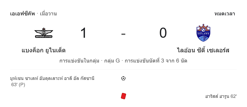 จาก : ผลบอลสด เอเอฟซี แชมเปี้ยนส์ลีก อีลิท ทู ระหว่าง คายา เอฟซี 0-2 บีจี ปทุม ยูไนเต็ด วันนี้ 23/10/68 – บ้านกีฬา