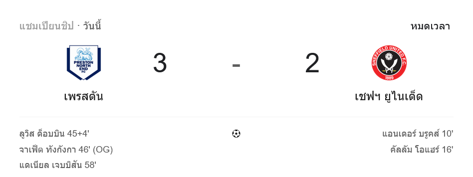 จาก : ผลบอลสด อีเอฟแอลแชมเปียนชิป ระหว่าง เพรสตัน นอร์ท เอนด์ 3-2 เชฟฟิลด์ ยูไนเต็ด วันนี้ 25/10/68 – บ้านกีฬา