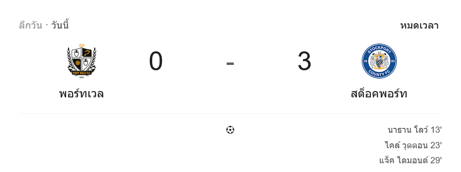 จาก : ผลบอลสด ลีกวัน อังกฤษ ระหว่าง พอร์ทเวล 0-3 สต็อคพอร์ท เคาน์ตี วันนี้ 28/10/68 – บ้านกีฬา