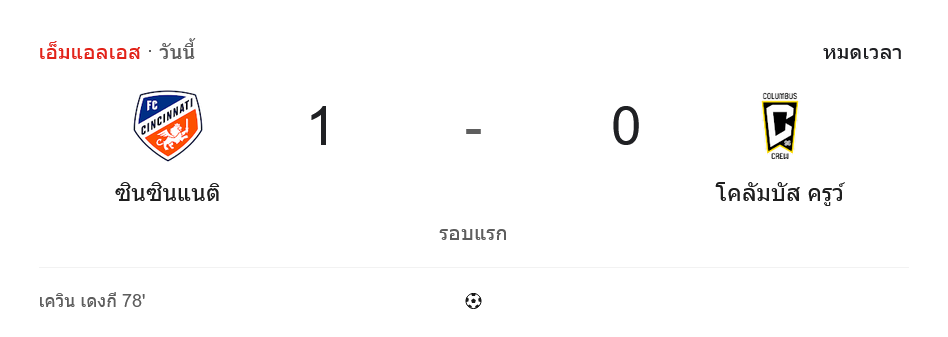 จาก : ผลบอลสด เมเจอร์ลีกซอกเกอร์ ระหว่าง เอฟซี ซินซินเนติ 1-0 โคลัมบัส ครูว์ วันนี้ 28/10/68 – บ้านกีฬา