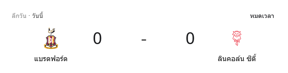 ศึกฟุตบอล ลีกวัน อังกฤษ ค่ำคืนที่ผ่านมาเต็มไปด้วยความตึงเครียด เมื่อ แบรดฟอร์ด ซิตี้ เปิดบ้านเสมอ ลินคอล์น ซิตี้ 0-0 แบบไร้สกอร์ แต่เกมไม่ได้จืดอย่างที่ผลบอก เพราะจังหวะปะทะ ความเข้มของแท็กติก และโอกาสที่พลาดกันไปแบบเฉียดฉิว ทำให้แฟนบอลตามลุ้นจนจบ บ้านกีฬา เกาะติด ผลบอลสด แบบนาทีต่อนาที บอกได้เลยว่าทั้งสองทีมใส่กันเต็มสูบตลอด 90 นาที