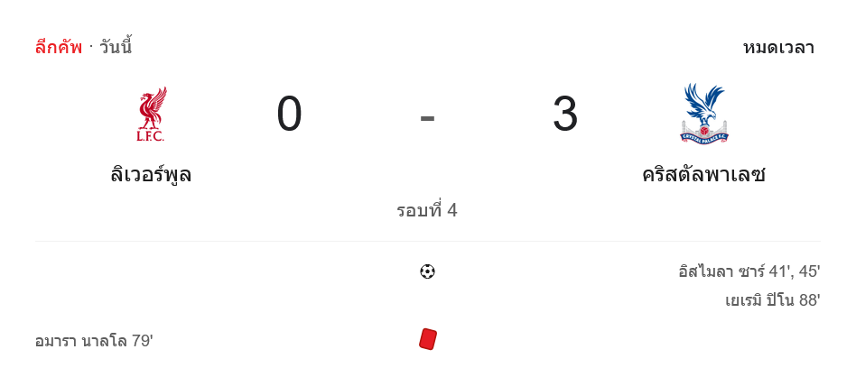 FT ลิเวอร์พูล 0-3 คริสตัล พาเลซ