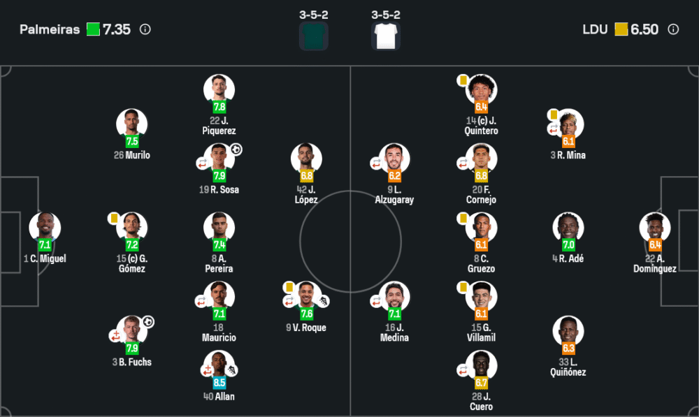 ในเชิง วิเคราะห์บอล แผน 3-5-2 ของพัลไมรัสยืดหยุ่นกว่ามาก เมื่อเปลี่ยนเป็น 3-4-3 ในจังหวะรุก และกลับมาตั้ง 5-4-1 เมื่อเสียบอล ทำให้ทีมคุมเกมได้เบ็ดเสร็จ ต่างจากกีโต้ที่ถูกบีบจนตั้งเกมไม่ขึ้นและขาดจังหวะเชื่อมระหว่างกลางกับหน้าอย่างสิ้นเชิง