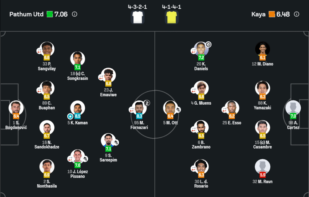 🟡 คายา เอฟซี (ระบบ 4-1-4-1, เรตติ้งเฉลี่ย 6.48)
