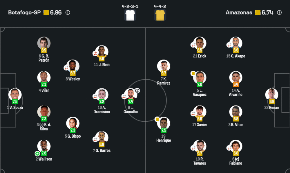 รางวัลผู้เล่นยอดเยี่ยมของเกมนี้ต้องยกให้ วัลลิสสัน แบ็กขวาโบต้าโฟโก้ เอสพี ที่ได้คะแนนสูงสุด 7.6 จากการวิ่งขึ้นลงตลอด 90 นาทีเต็ม เขาไม่เพียงคุมเกมรับฝั่งขวาได้อยู่หมัด ปิดทางครอสของ เอริก และ ลวน ซิลวา แทบสนิท แต่ยังเติมเกมรุกซ้อน ปาตรอน ขึ้นไปเปิดบอลหลายครั้ง สร้างความปั่นป่วนให้แนวรับอมาโซนัสอย่างต่อเนื่อง ถือเป็นหัวใจสำคัญที่ทำให้เจ้าบ้านรักษาคลีนชีตได้ในค่ำคืนนี้
