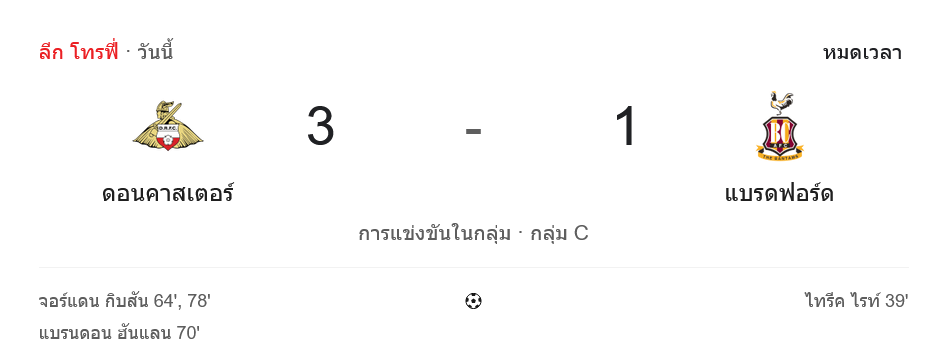 - ⚽ 78’ ดอนคาสเตอร์นำห่าง 3-1 – J. Gibson กดเบิ้ล