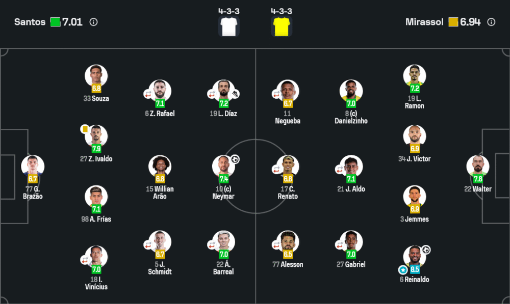 🐬 ซานโตส (4-3-3) – เรตติ้งจาก Sofascore