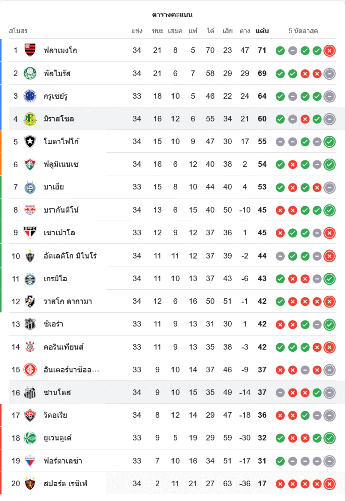 📈 สถานการณ์ในตารางคะแนนกัมเปโอนาตู บราซีเลย์โร ซีรีเอ