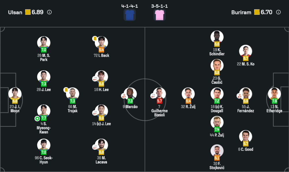 • 🔁 นาที 79–85: อุลซานส่ง โค ซึงบอม, อี ชุงยอง และ ฮอ ยุล ลงสนาม หวังเร่งเกมบุกช่วงท้าย