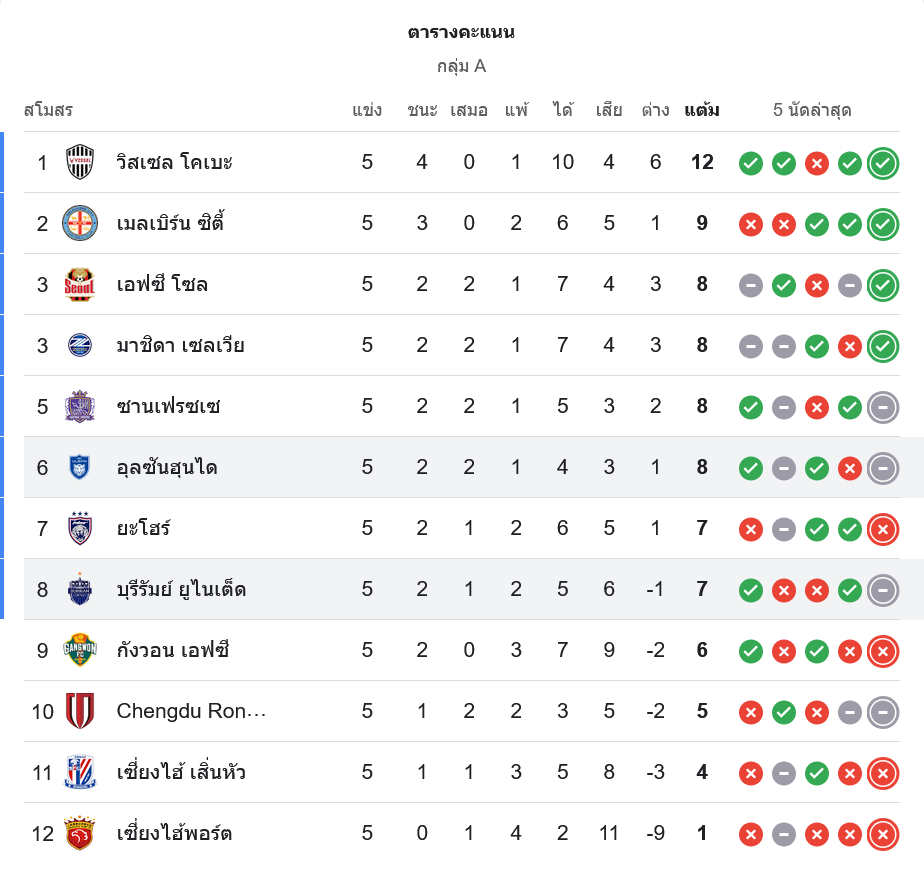 📈 สถานการณ์ในตารางคะแนนเอเอฟซี แชมเปี้ยนส์ลีก อีลิท กลุ่ม A
