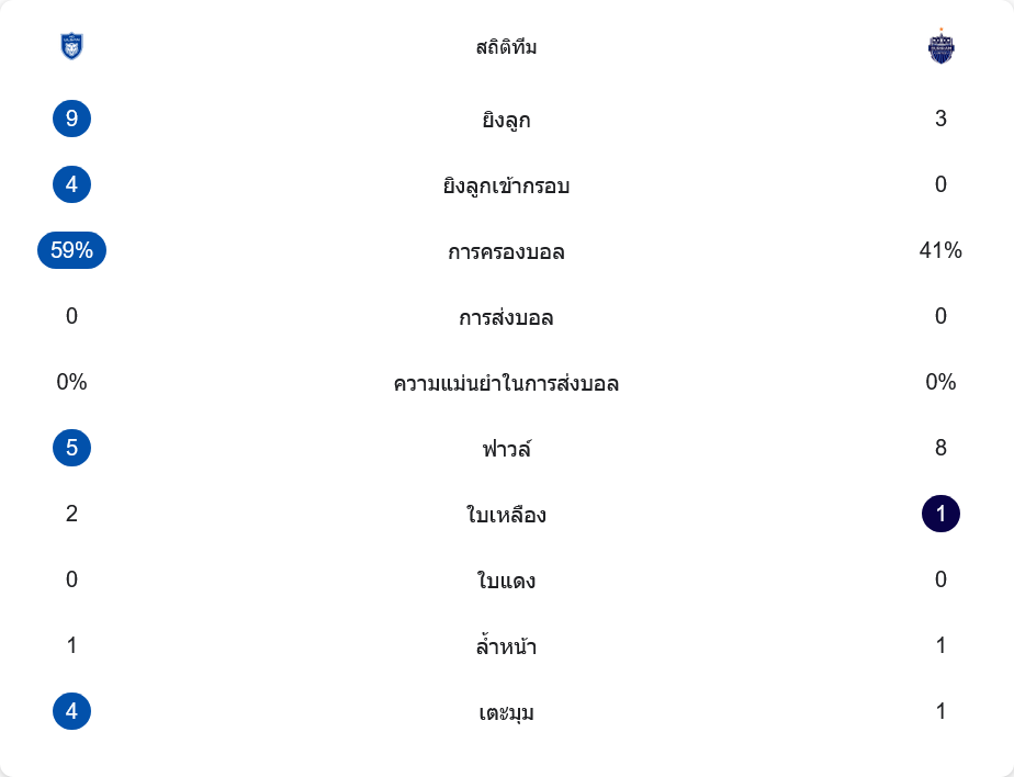 📊 สถิติการแข่งขันสะท้อนรูปเกมอย่างชัดเจน