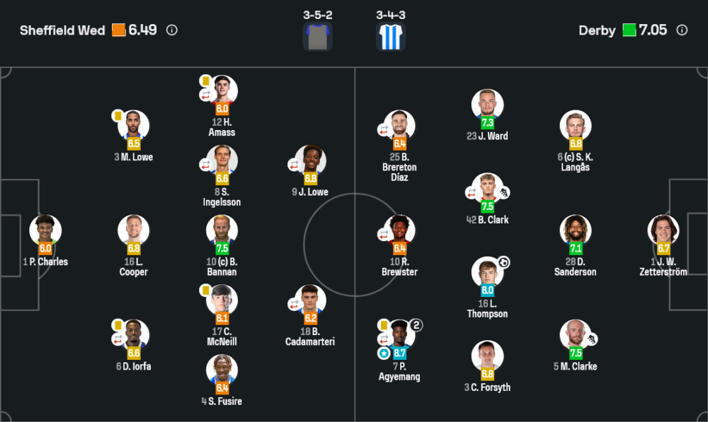 ท้ายเกมเจ้าถิ่นเปลี่ยนแทบยกชุด ส่งกาเบรียล โอเตกบาโย, ไอค์ อักโบ และยิซ่า อลาโอ ลงมาแต่ก็ไม่อาจช่วยอะไรได้ ขณะที่ดาร์บี้ถอดตัวหลักพัก ส่งอันเดรียส ไวมานน์, เอบู อดัมส์, เคย์เดน แจ็คสัน และลาร์ส-เยอร์เกน ซัลเวเซน ลงมาเก็บนาที ปล่อยให้เวลาไหลไปจนจบเกมด้วยชัยชนะ 3-0 ของทีมเยือนแบบสบายเท้า