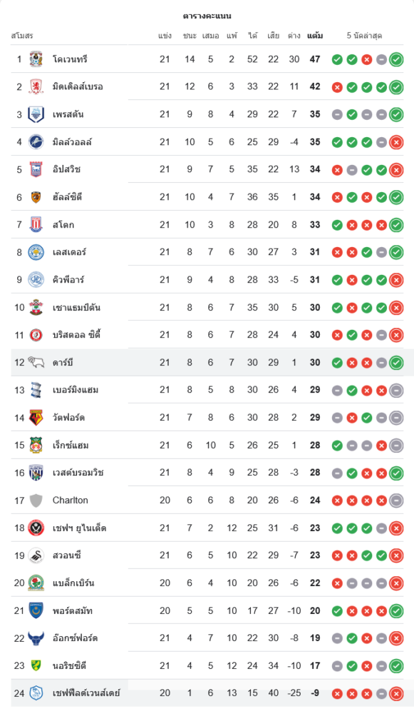 🧮 สถานการณ์ในตารางคะแนน EFL แชมเปียนชิป
