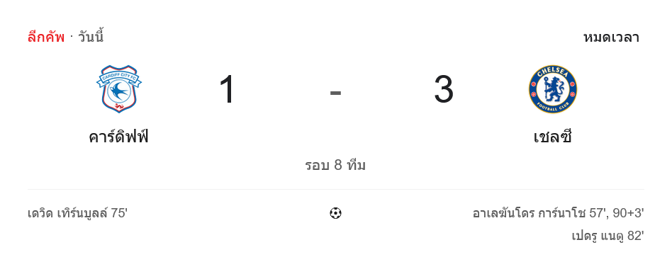 จาก : ผลบอลสด คาราบาวคัพ ระหว่าง คาร์ดิฟฟ์ซิตี 1-3 เชลซี วันนี้ 17/12/68 – บ้านกีฬา
