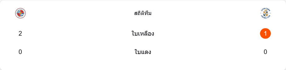ด้านวินัยเกมรับ ใบเหลืองตกเป็นของฝั่งเร้ดดิ้ง 2 ใบ จาก แอนดี ยีอาดอม และ เคลวิน เอลิบาติฮอมาน ที่ต้องตัดเกมช่วงท้าย ส่วนลูตันโดนใบเหลือง 1 ใบจาก จาค็อบ บราวน์ สะท้อนให้เห็นว่าเจ้าบ้านยอม “เล่นหนัก” เล็กน้อยเพื่อรักษาสกอร์ในช่วงสำคัญ ขณะที่เกมโดยรวมไม่มีใบแดง ทำให้จบด้วยความเดือดแต่ยังอยู่ในกรอบกติกา