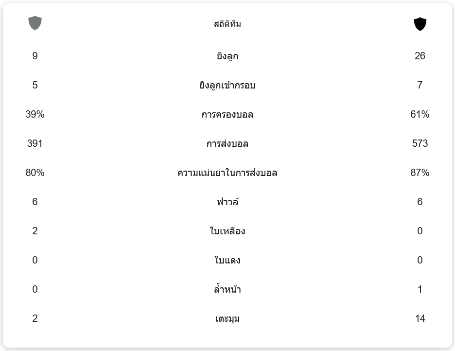 • การยิงเข้ากรอบ: อีคีนาส ไอเอฟ ฟุตบอล 5 ครั้ง – 7 ครั้ง คูพีเอส