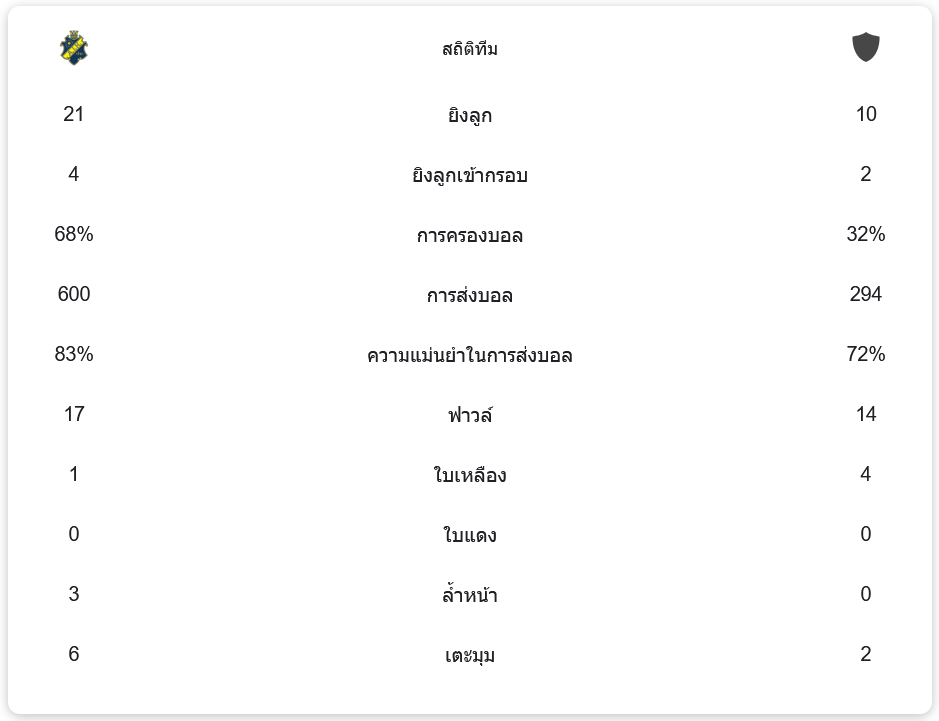 - การยิงลูก: เอไอเค โซลน่า 21 ครั้ง – 10 ครั้ง จีเอไอเอส