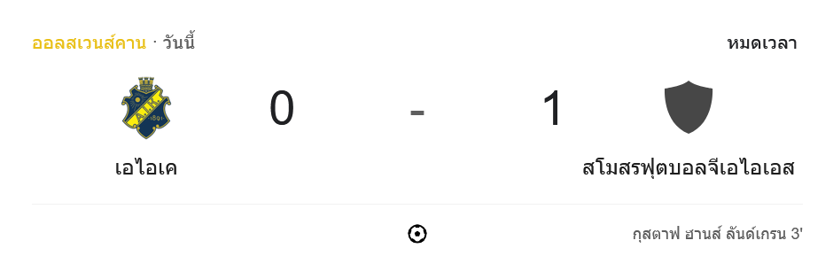 ผลบอลออลสเวนส์คาน 2024 ระหว่าง ทีมเอไอเค โซลน่า vs ทีมจีเอไอเอส วันนี้ 30 กรกฎาคม 2567 ดูบอลย้อนหลัง คลิปไฮไลท์ ดูบอลออลสเวนส์คาน 2024