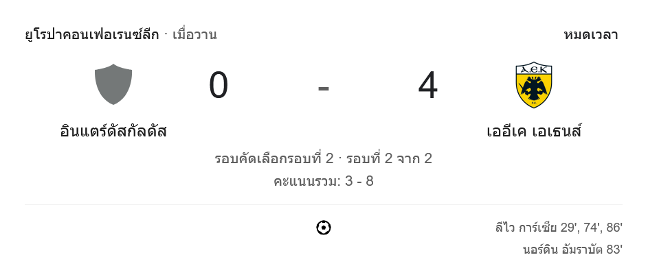 ผลบอลยูฟ่ายูโรปาคอนเฟอเรนซ์ลีก 2024 ระหว่าง ทีมอินเตอร์ คลับ เอสคัลเดส vs ทีมเออีเค เอเธนส์ วันนี้ 2 สิงหาคม 2567 ดูบอลย้อนหลัง คลิปไฮไลท์ ดูบอลยูฟ่ายูโรปาคอนเฟอเรนซ์ลีก 2024