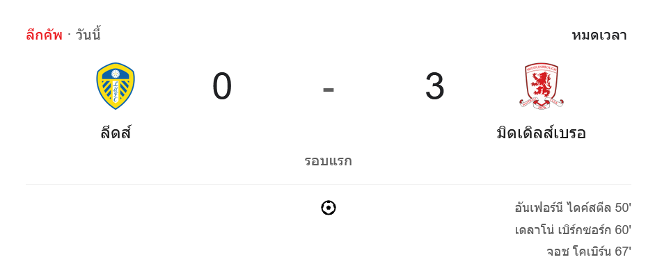 ผลบอลอีเอฟแอลคัพ 2024 ระหว่าง ลีดส์ ยูไนเต็ด 0-3 มิดเดิลสโบรห์ วันนี้ 15/8/67
