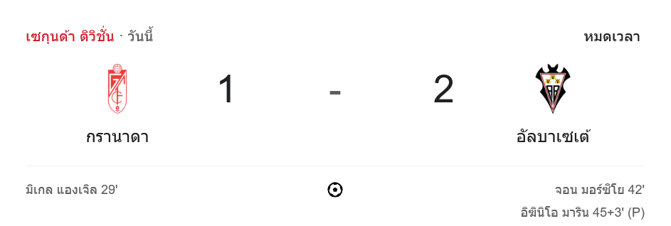 ผลบอลเซกุนด้า ดิวิชั่น 2024 ระหว่าง ทีมกรานาดา ซีเอฟ vs ทีมอัลบาเซเต้ วันนี้ 16/8/67 ดูบอลย้อนหลัง คลิปไฮไลท์ ดูบอลเซกุนด้า ดิวิชั่น 2024