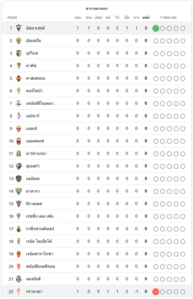 ตารางคะแนนเซกุนด้า ดิวิชั่น 2024