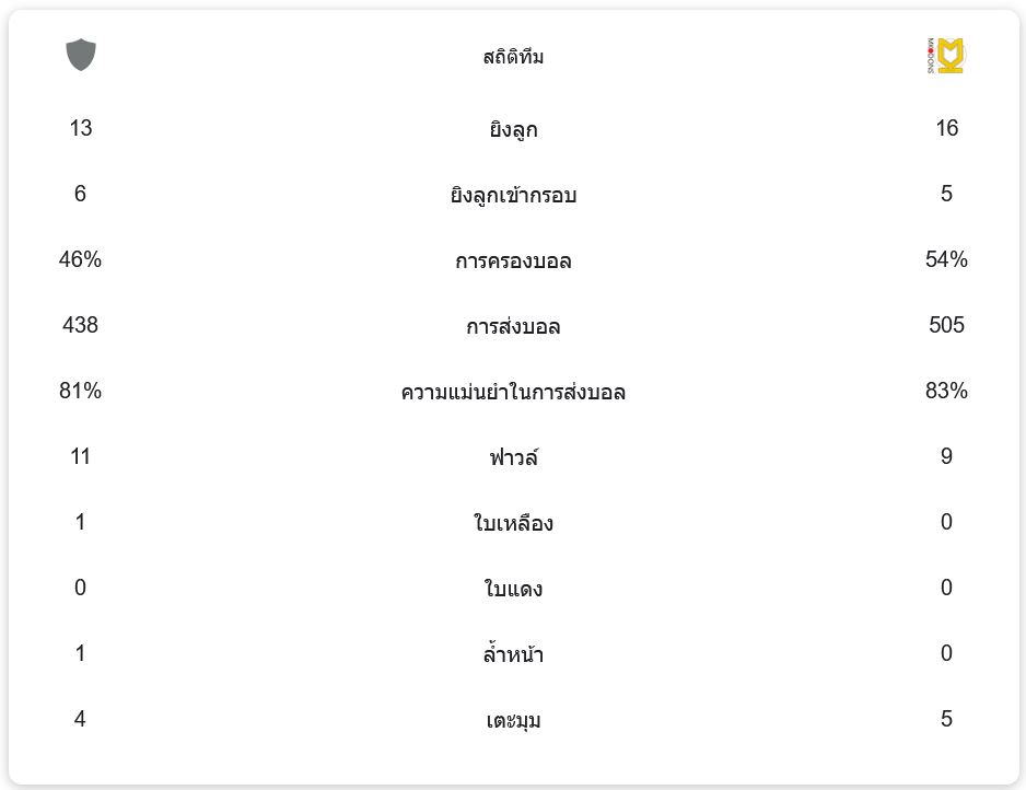 สถิติการแข่งขัน แสดงให้เห็นถึงความสามารถในการสร้างโอกาสของทั้งสองทีม มิลตัน คียนส์ ดอนส์ มีการส่งบอลทั้งหมด 505 ครั้ง ด้วยความแม่นยำในการส่งบอล 83% ขณะที่ซอลฟอร์ด ซิตี้ มีการส่งบอลทั้งหมด 438 ครั้ง ด้วยความแม่นยำ 81% แม้จะมีการครองบอลน้อยกว่า แต่ก็สามารถสร้างโอกาสในการทำประตูได้เท่าๆ กันที่ 6 ครั้งเข้ากรอบ