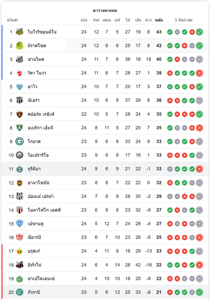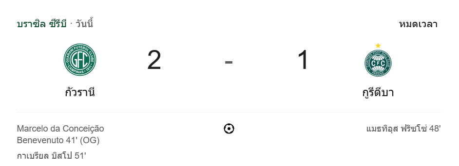 ผลบอลคัมปิโอนาโต บราซิเลียโร ซีรีบี 2024 กัวรานี่ เอสพี 2-1 กอริติบ้า พีอาร์