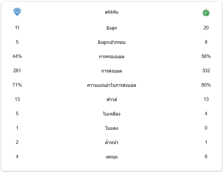 แม้ว่าชาเปโคเอนเซ่จะมีเปอร์เซ็นต์การครองบอลมากถึง 56% และมีโอกาสยิงทั้งหมด 20 ครั้ง แต่ความแม่นยำของพวกเขาในการจบสกอร์ยังไม่เพียงพอ ขณะที่เปซานดูแม้จะครองบอลได้น้อยกว่า แต่การยิงเข้ากรอบ 5 ครั้งจาก 11 ครั้งนั้นทำให้พวกเขาสามารถทำประตูได้ถึง 2 ประตู การเล่นของชาเปโคเอนเซ่ยังถูกตัดขาดด้วยการฟาวล์และโดนใบเหลืองถึง 4 ใบ พร้อมใบแดงอีก 1 ใบ