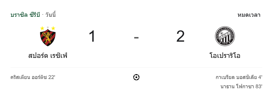 ผลบอลคัมปิโอนาโต บราซิเลียโร ซีรีบี 2024 ระหว่าง สปอร์ต คลับ เรซิเฟ่ พีอี 1-2 โอเปราริโอ แฟร์โรวิอาริโอ พีอาร์ วันนี้ 17/10/67