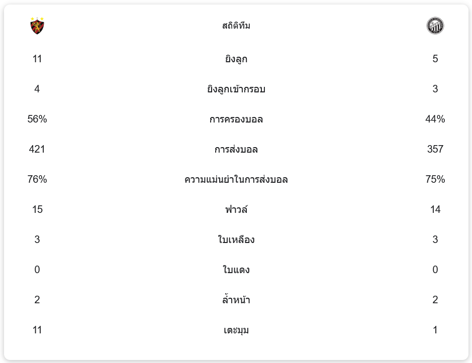 สถิติคัมปิโอนาโต บราซิเลียโร ซีรีบี 2024 ระหว่าง สปอร์ต คลับ เรซิเฟ่ พีอี 1-2 โอเปราริโอ แฟร์โรวิอาริโอ พีอาร์