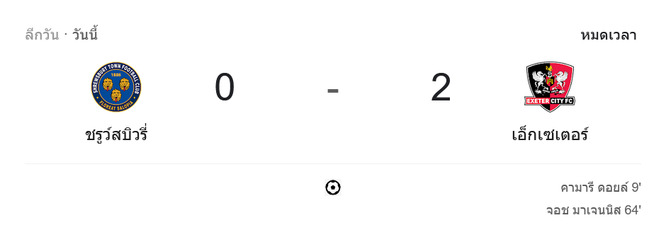 ผลบอลสดลีกวัน อังกฤษ 2024 ระหว่าง ทีมชรูว์สบิวรี่ ทาวน์ vs ทีมเอ็กซ์เซเตอร์ ซิตี้ วันนี้ 18/10/67 ดูบอลย้อนหลัง คลิปไฮไลท์ ดูบอลลีกวัน อังกฤษ 2024