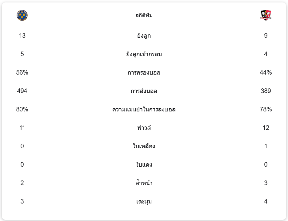 แม้ว่าชรูว์สบิวรี่จะมีการครองบอลมากถึง 56% และส่งบอลสำเร็จ 494 ครั้ง ด้วยความแม่นยำ 80% แต่พวกเขาก็ไม่สามารถทำประตูได้จากโอกาสยิงทั้งหมด 13 ครั้ง โดยยิงเข้ากรอบเพียง 5 ครั้ง ขณะที่เอ็กซ์เซเตอร์มีโอกาสยิง 9 ครั้ง และยิงเข้ากรอบถึง 4 ครั้ง และทำได้ถึง 2 ประตู ในขณะที่การฟาวล์ในเกมนี้ ชรูว์สบิวรี่ฟาวล์ 11 ครั้ง และเอ็กซ์เซเตอร์ฟาวล์ 12 ครั้ง