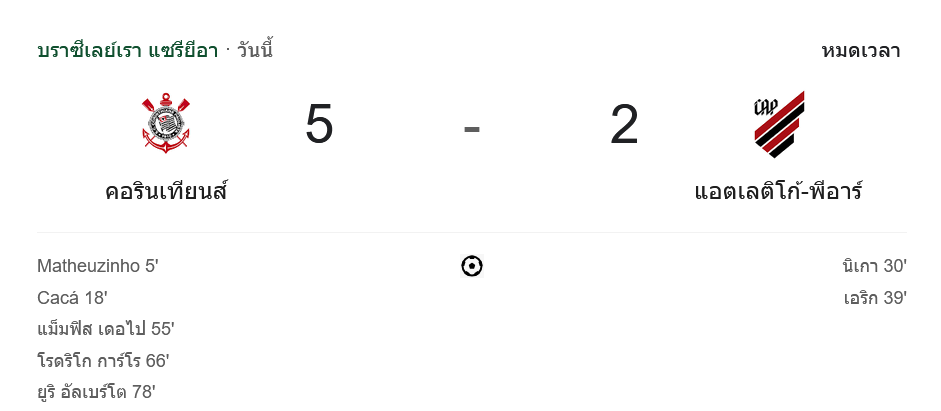 • ⚽ 5′ – ประตูโดย Matheuzinho (คอรินเทียนส์)