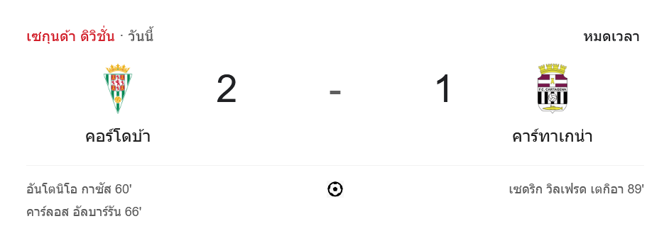 ผลบอลสดเซกุนด้า ดิวิชั่น 2024 ระหว่าง ทีมคอร์โดบ้า vs ทีมเอฟซี คาร์ทาเกน่า วันนี้ 19/10/67 ดูบอลย้อนหลัง คลิปไฮไลท์ ดูบอลเซกุนด้า ดิวิชั่น 2024
