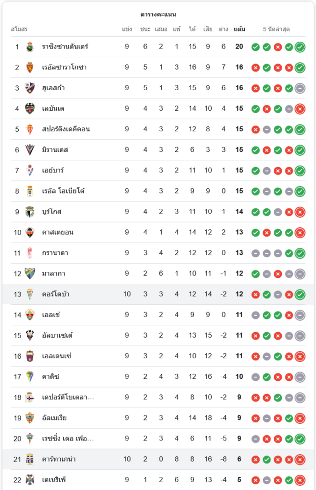 ชัยชนะครั้งนี้ทำให้ คอร์โดบ้า ขยับขึ้นมาอยู่ในอันดับที่ 13 ของตารางคะแนน มี 12 คะแนนจาก 10 นัด ขณะที่ คาร์ทาเกน่า ยังคงอยู่ในโซนอันตรายที่อันดับ 21 มีเพียง 6 คะแนนจาก 10 นัด ต้องเร่งฟอร์มอย่างหนักหากต้องการอยู่รอดในลีกนี้