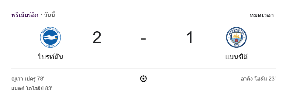 - ⚽ 83′ แม็ตต์ โอ’ไรลีย์ ยิงประตูชัยให้ไบรท์ตัน