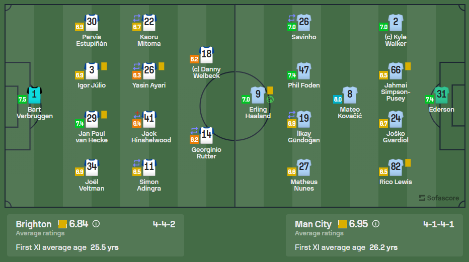 - แมนเชสเตอร์ ซิตี้: นักเตะโดดเด่น เออร์ลิง ฮาแลนด์ (7.0), เมทเทโอ โควาซิช (8.0)