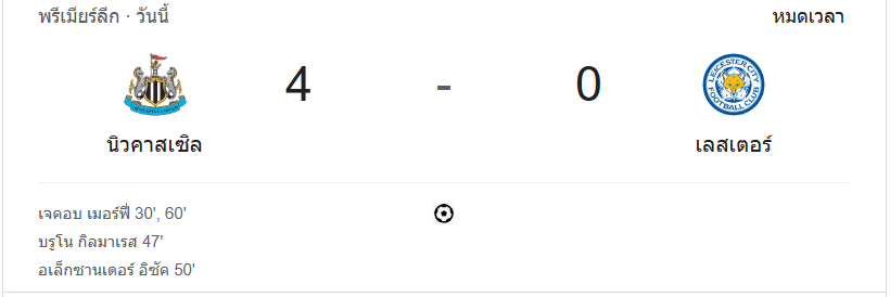 เกมนี้เป็นอีกหนึ่งแมตช์ที่นิวคาสเซิ่ลโชว์ฟอร์มร้อนแรง ขณะที่เลสเตอร์ดูเหมือนจะขาดความเฉียบขาดในเกมรุก การเก็บสามแต้มเต็มในบ้านครั้งนี้ทำให้นิวคาสเซิ่ลยึดตำแหน่งในโซนหัวตารางได้อย่างแข็งแกร่ง ขณะที่เลสเตอร์ต้องกลับไปปรับแผนเพื่อหวังเก็บชัยในนัดถัดไป