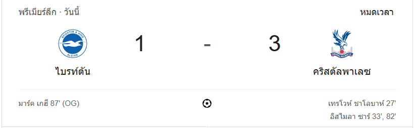 นาทีที่ 90+4: จบเกม ไบรท์ตัน พ่ายแพ้ให้กับ คริสตัล พาเลซ ไป 1-3