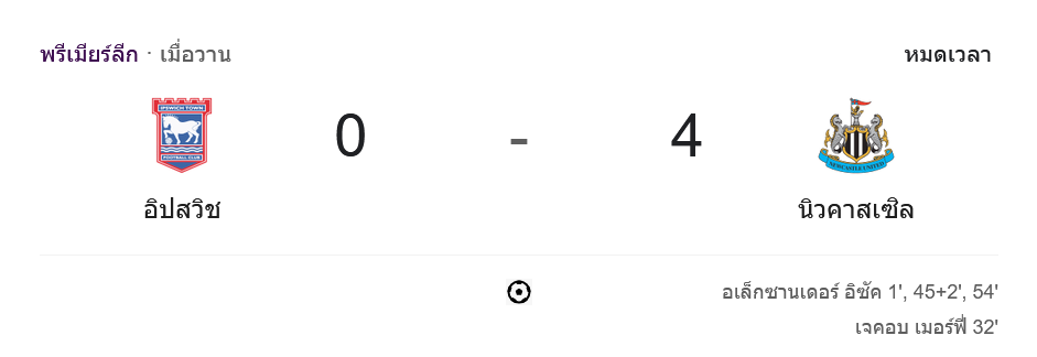จาก : ผลบอลสด พรีเมียร์ลีก 2024 ระหว่าง อิปสวิช ทาวน์ 0-4 นิวคาสเซิ่ล ยูไนเต็ด วันนี้ 21/12/67 – บ้านกีฬา