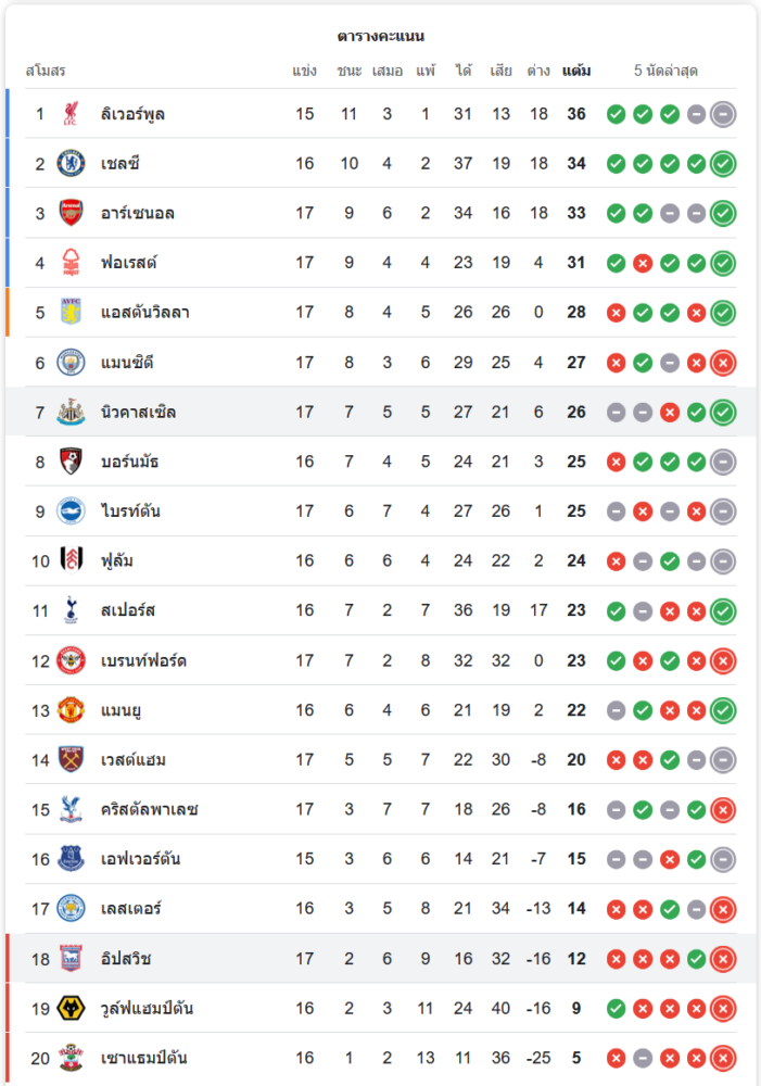 สถานการณ์ในตารางคะแนน