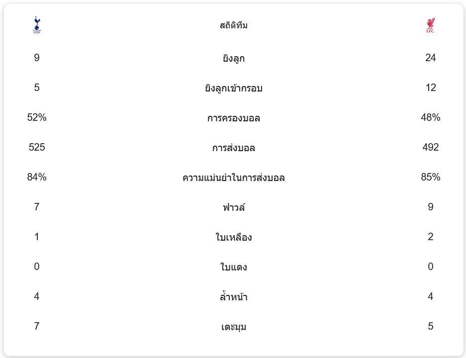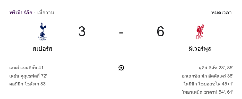 จาก : ผลบอลสด พรีเมียร์ลีก 2024 ระหว่าง ท็อตแน่ม ฮ็อทสเปอร์ 3-6 ลิเวอร์พูล วันนี้ 22/12/67 – บ้านกีฬา