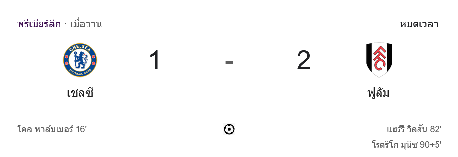 - ⚽ นาทีที่ 90+5: โรดริโก มูนิซ ยิงประตูชัยให้ฟูแล่ม