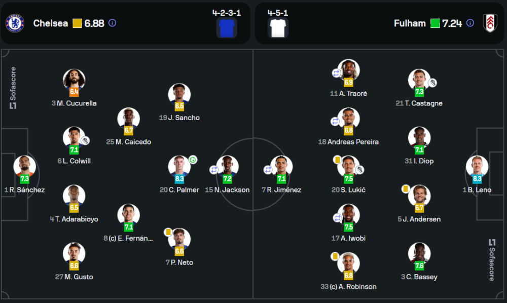 เชลซีใช้แผน 4-2-3-1 ที่เน้นเกมรุกจากแดนกลาง โดยมี โคล พาล์มเมอร์ เป็นตัวหลักในการสร้างสรรค์เกม ขณะที่ฟูแล่มมาในระบบ 4-5-1 เน้นการป้องกันและสวนกลับเร็ว การเปลี่ยนตัวของฟูแล่มในครึ่งหลังมีผลทันที โดยเฉพาะ แฮร์รี วิลสัน ที่เปลี่ยนเกมและยิงประตูสำคัญ วิเคราะห์บอลจากเกมนี้ชี้ให้เห็นว่า ฟูแล่มมีจุดเด่นในความแม่นยำการส่งบอล (86%) และการสร้างโอกาสในช่วงเวลาสำคัญ