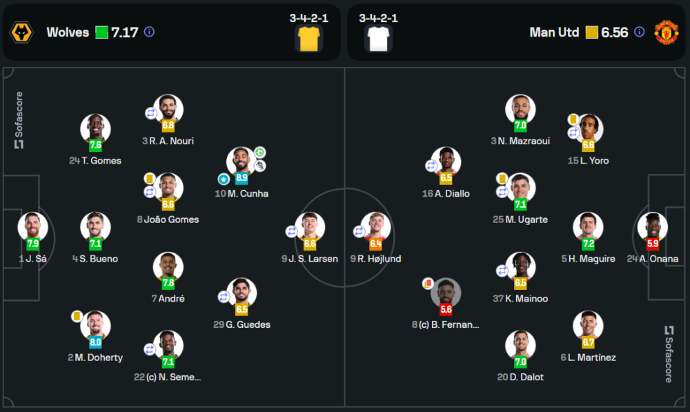 วูล์ฟแฮมป์ตันใช้แผน 3-4-2-1 ที่เน้นการรุกริมเส้นและจ่ายบอลเร็วเข้าสู่กรอบเขตโทษ ทำให้การเล่นของพวกเขาดูไหลลื่นและน่ากลัว ส่วนแมนเชสเตอร์ ยูไนเต็ด ที่เลือกแผน 3-4-2-1 เหมือนกัน กลับขาดความเฉียบขาดในแดนหน้าและโดนสวนกลับอย่างรุนแรงจากเจ้าบ้าน