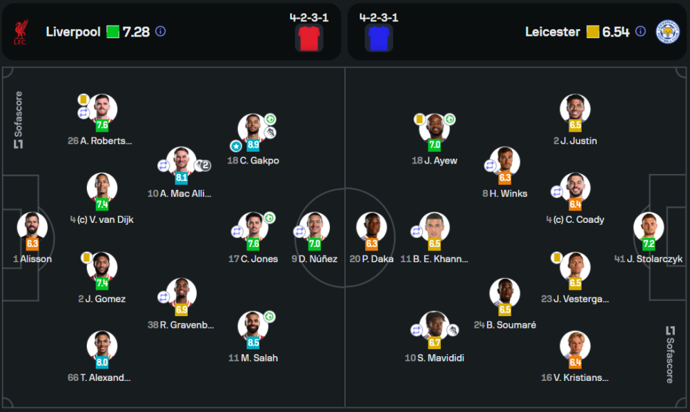 โคดี้ กัคโป โชว์ฟอร์มสุดยอด ยิง 1 ประตูและแอสซิสต์ 1 ครั้ง เป็นตัวแปรสำคัญที่ช่วยให้ลิเวอร์พูลเก็บชัยในเกมนี้