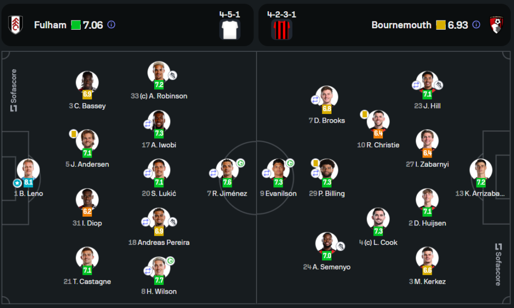 แบร์นด์ เลโน นายประตูของฟูแล่มโชว์ฟอร์มสุดยอดด้วยการเซฟสำคัญหลายครั้ง ทำคะแนนได้ถึง 8.1